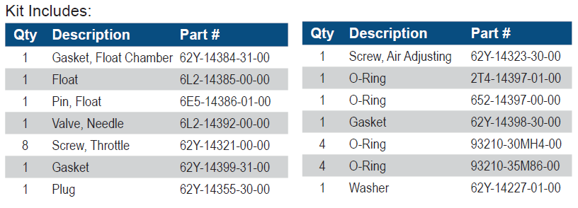 CARBURETOR REPAIR KIT 62Y-W0093-11-00