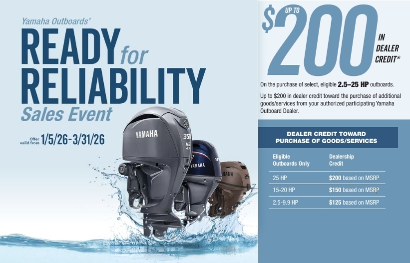 10% OFF! USE CODE "10FORYOU" EXCLUDES OUTBOARD MOTORS AND YES WARRANTIES. CHECKOUT OUR HOT DEALS!