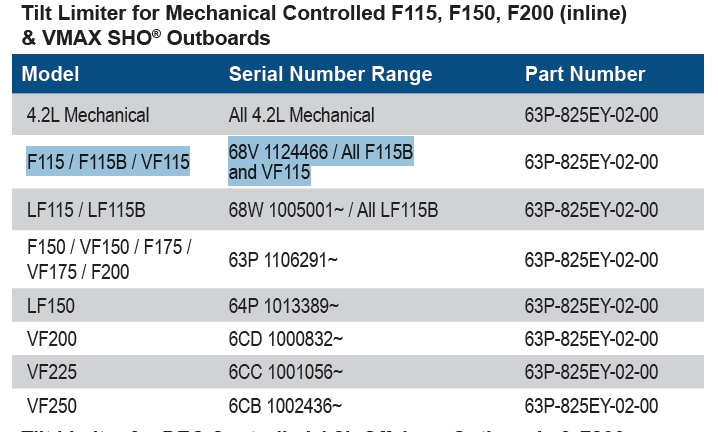 The tilt limiter for the new Yamaha Outboards was introduced to assist